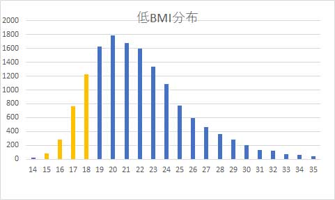 概要: BMIは、肥満傾向の指標として利用されることが多いのですが、この数値自身は身長と体重のバランスを算定するもので、 既定の数値に満たない場合は、「やせすぎ」という体格の推定ができます。 「やせすぎている」のは決して健康ではなくさまざまな病気への罹りやすさにも繋がるため注意が必要です。 経年のBMI変化や急激な変化などを組み合わせて、指導対象を抽出できます。 確認事項 ・BMIが18.5以下(年齢で微調整) ・肥満ではない方が、前年比較で体重が減少傾向(5%以上の変動) 成長期を過ぎると身長が大きく変わらない分、体重の増減によってBMI値が変化します。 肥満傾向の方がダイエットでより低いBMIになるのは良いことで、努力の証と言えますが 本人が意図しないBMIの変動には、何らかの体調不良や生活の不安定などの要因が考えられます。 |
